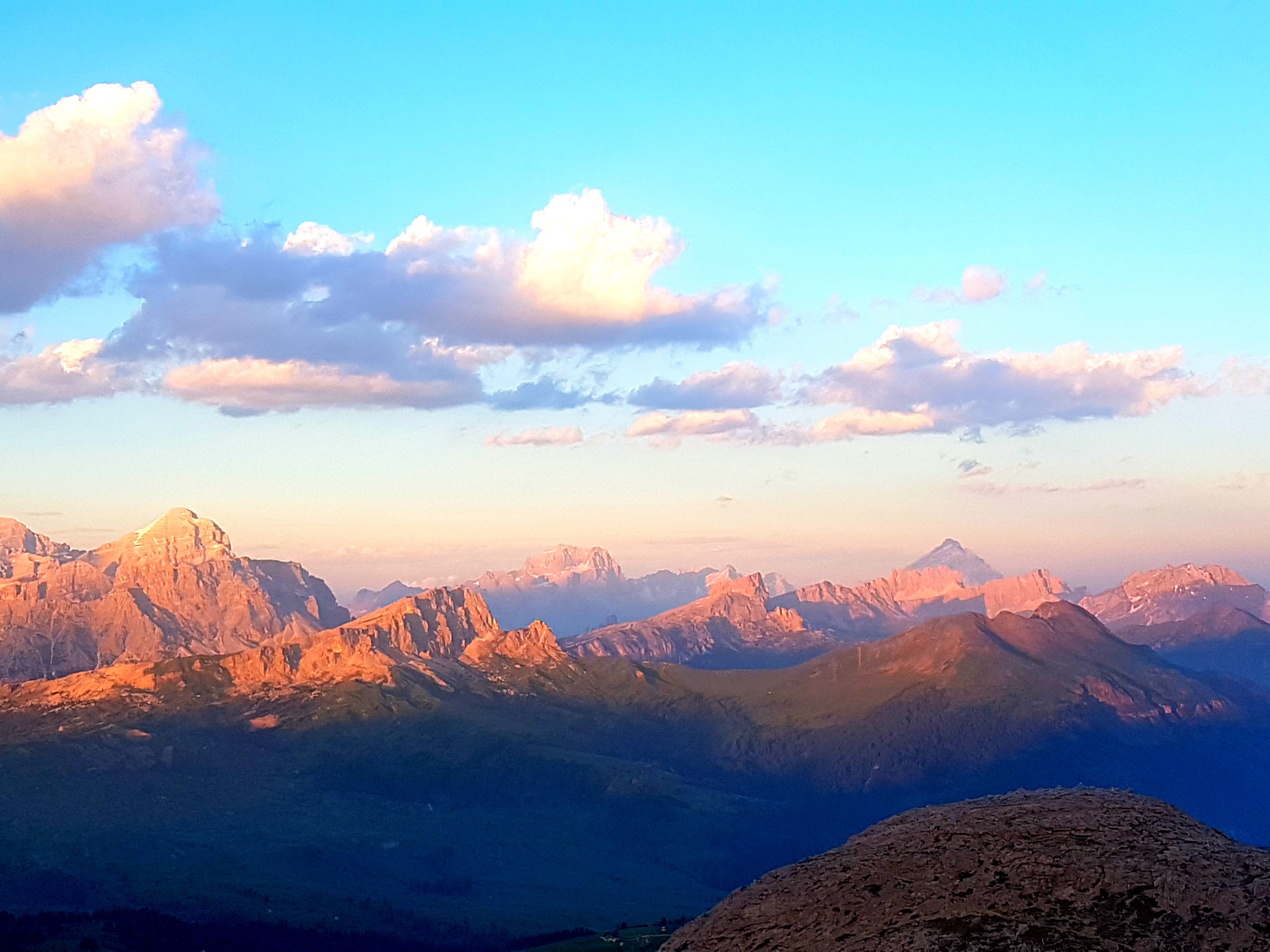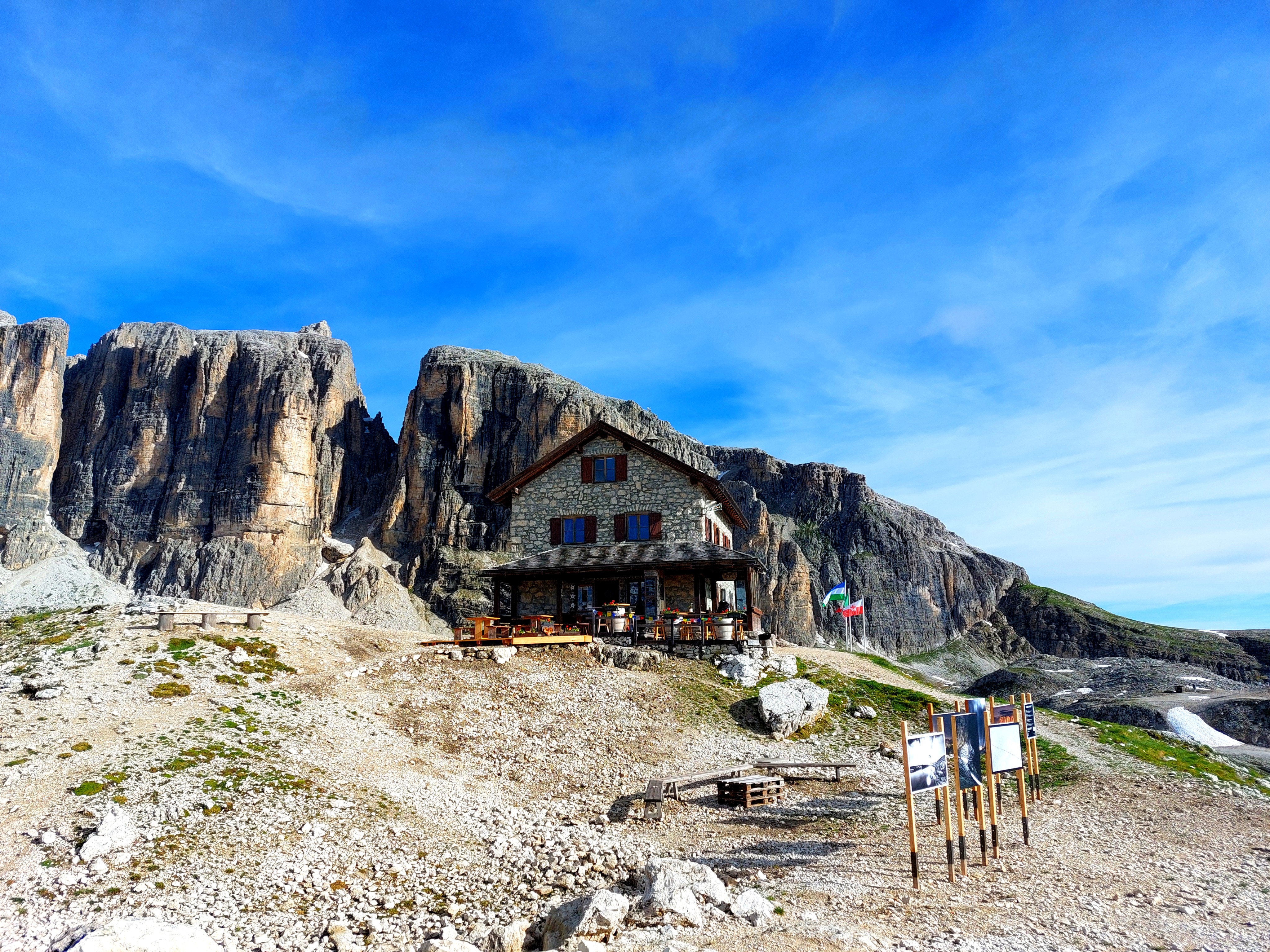 | Tag 3 | Von der Franz Kostner Hütte zur Scotonihütte | Franz Kostner Hütte (2517m)-Campolongo Pass (1875m)-Prolognie Plateau (2571m)-Valparola Hütte (2168m)-Scotoni Hütte (2040m) 15,5 km 696hm ↑1045hm↓ Gehzeit: 7 Std. |